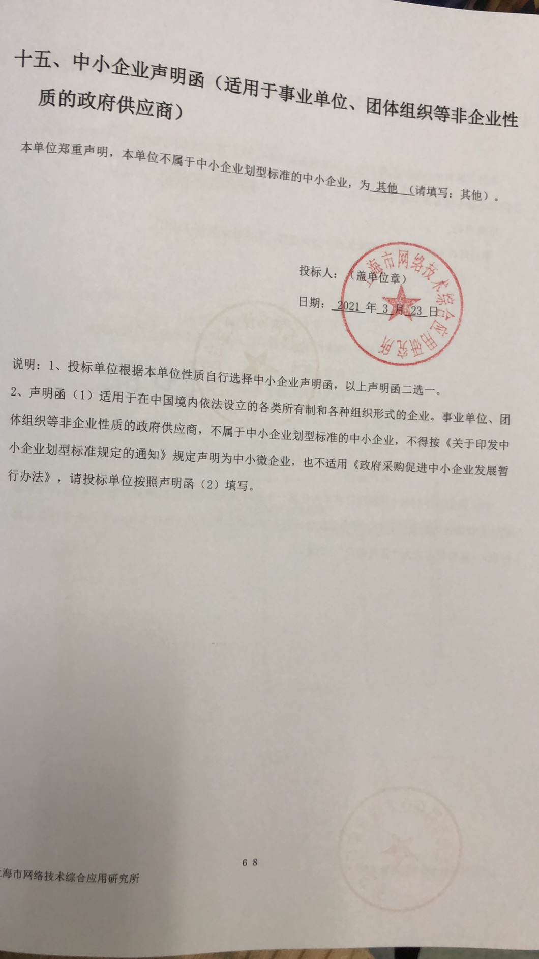 投标文件满足招标文件全部实质性要求,且按照招标文件中规定的评标方法和标准评审,得分最高的上海市网络技术综合应用研究所为排名第一的中标候选人。