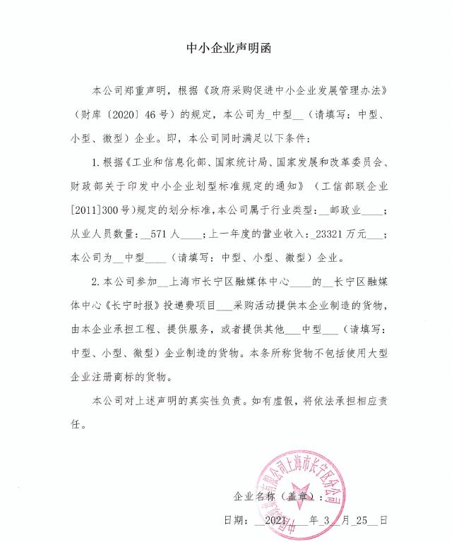 - 长宁区融媒体中心《长宁时报》投递费项目