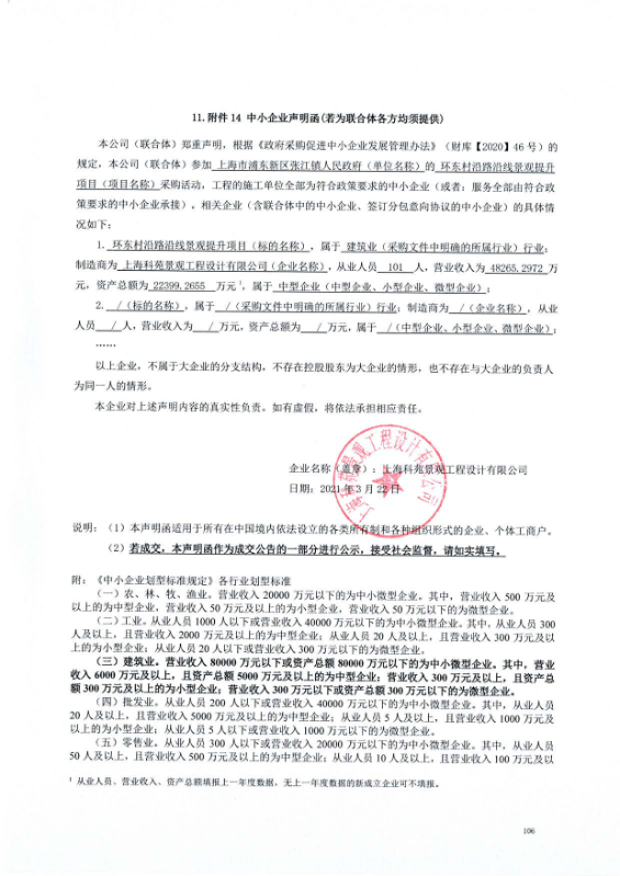 序号 标项名称 中标(成交金额) 中标供应商名称 中标供应商地址 1 环东村沿路沿线景观提升项目 ***.43元 上海科苑景观工程设计有限公司 真南路1226弄9号楼304 四、主要标的信息
