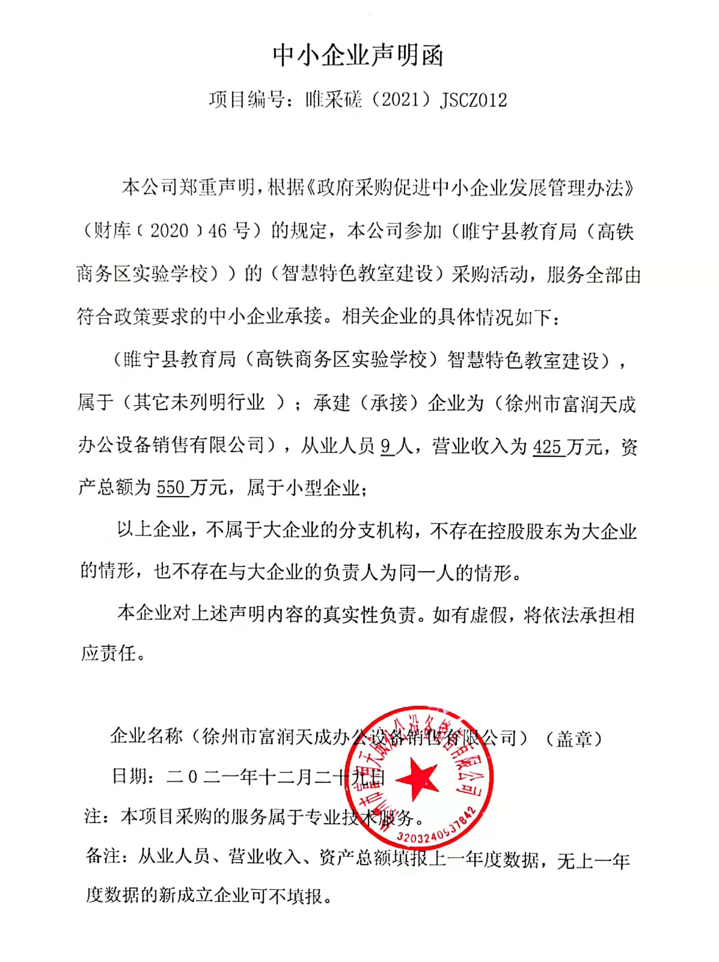 【睢】睢宁县教育局睢宁县教育局(高铁商务区实验学校)智慧特色教室建设竞争性磋商中标公告[项目编号:睢采磋(2021)JSCZ012]