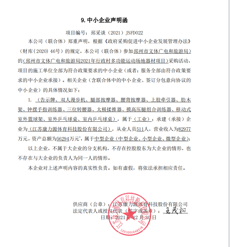 [邳]邳州市文体广电和旅游局2021年行政村多功能运动场地器材项目竞争性谈判中标公告[项目编号:邳采谈(2021)JSFD022]
