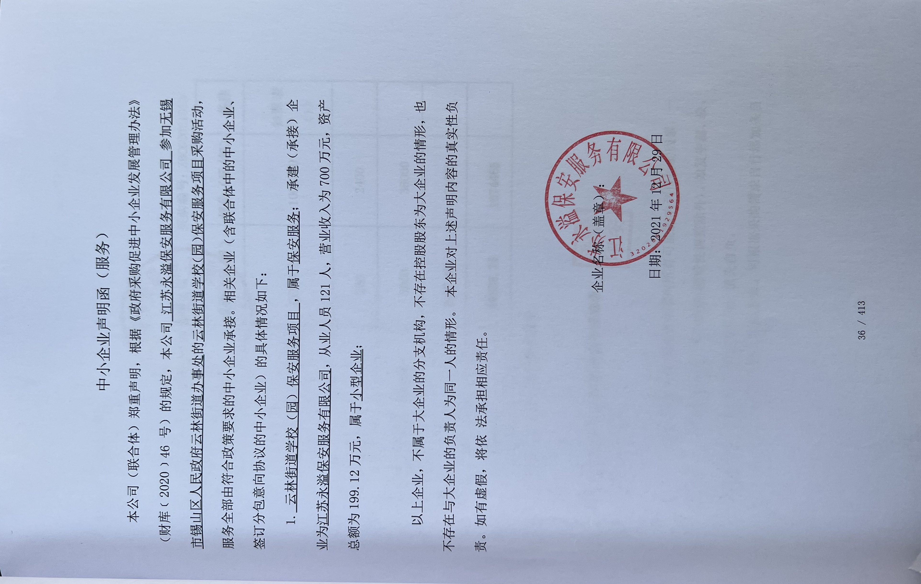 | 1 | 云林街道学校(园)保安服务 | 共计聘用22名保安人员,为每个中小学、幼儿园聘请保安应具备相应政治、业务、身体素质,年龄不高于50周岁,经有关法律和业务知识、技能培训,考核合格取得保安员证方能上岗。本项目共有5个校区。疫情防控期间,上岗人员符合疫情防控的相关要求。 | 不限 | 1批 | 报价:***(元) | 江苏永溢保安服务有限公司 | 无锡市惠山区惠澄大道77号综合楼六楼 | 91320206MA1PB2FW4P |