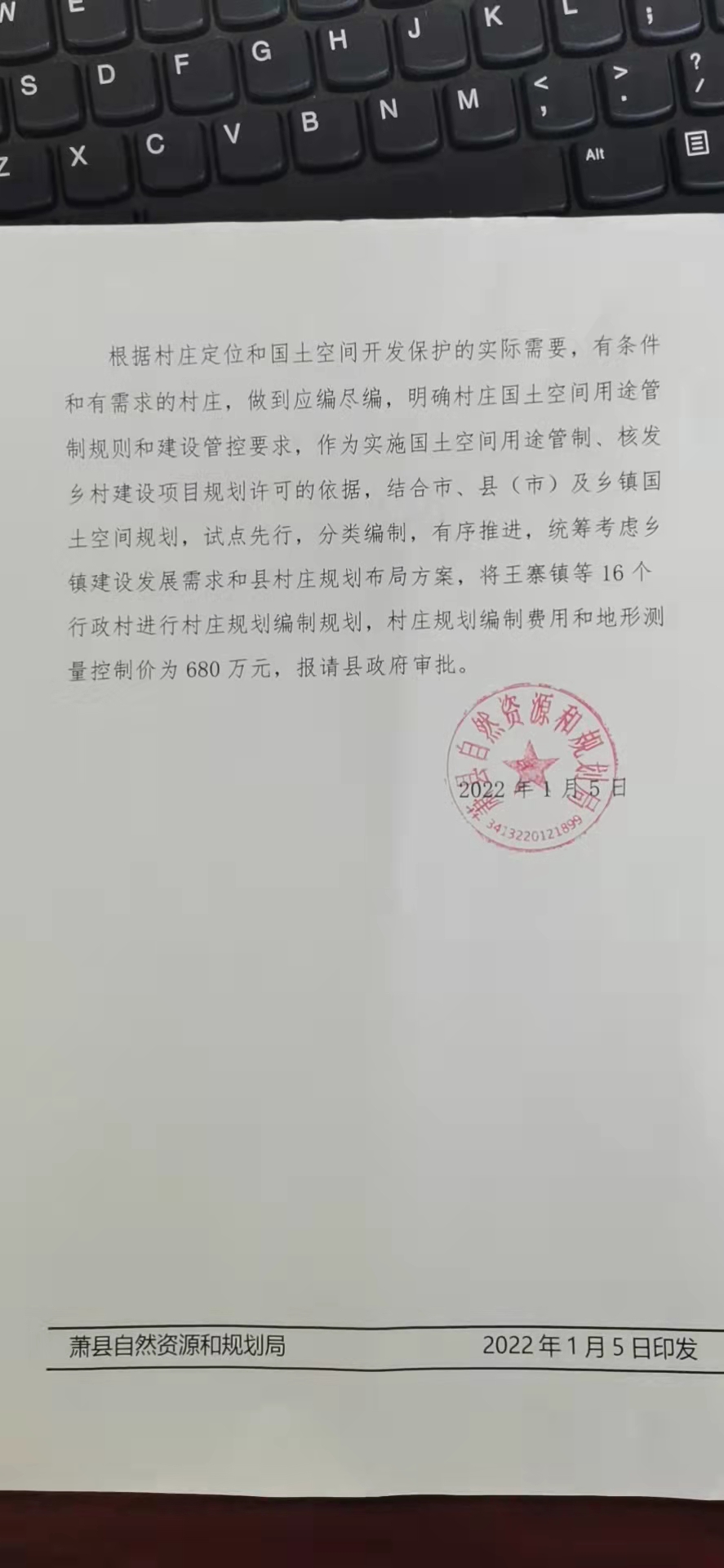 | 1 | 萧县2022年16个村庄规划编制费用 | 村庄规划三年行动(2021-2023年)2021-2022年度实施计划已纳入财政预算,根据村庄定位和国土空间开发保护的实际需要,有条件和与需求的村庄,做到应编尽编,明确村庄国土空间用途管制规则和建设管控要求,作为实施国土空间用途管制、核发乡村建设项目规划许可的依据,结合市、县(市)及乡镇国土空间规划,试点先行,分类编制,有序推进,统筹考虑乡镇建设发展需求和县村庄规划布局方案,将杨楼镇等16个行政村进行村庄规划编制。 | *** | 2022年04月 |