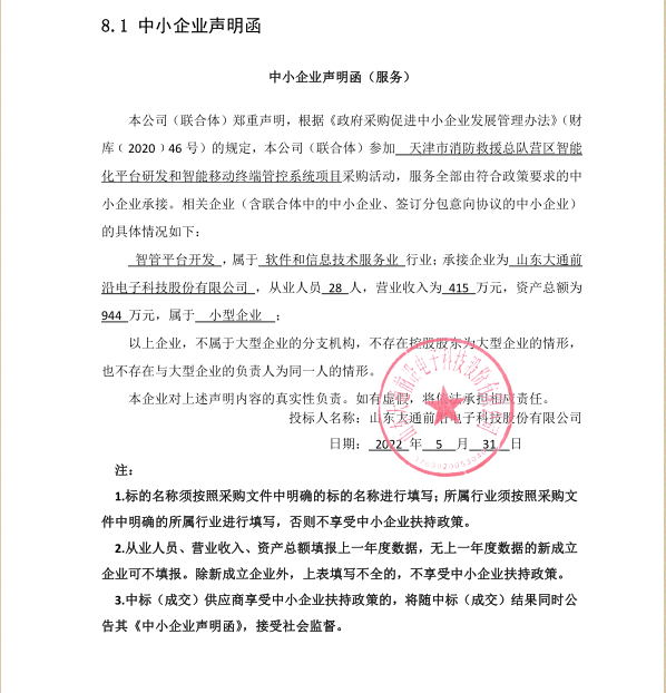 天津市消防救援总队营区智能化平台研发和智能移动终端管控系统项目(项目编号:TGPC-2021-D-0926)中标结果公告