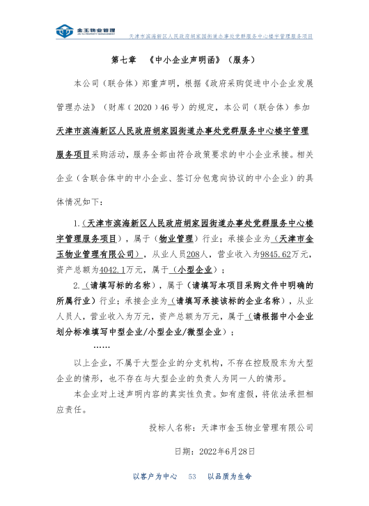 天津市滨海新区人民政府胡家园街道办事处党群服务中心楼宇管理服务项目(项目编号:TGPC-2022-BHD-0050)成交结果公告