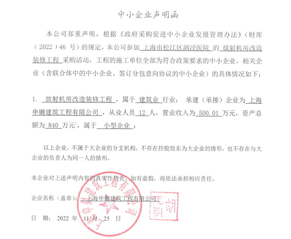 | 1 | 放射机房改造装修工程 | ***元 | 上海申樾建筑工程有限公司 | 上海市松江区徐塘路519号2号楼3层301室 |