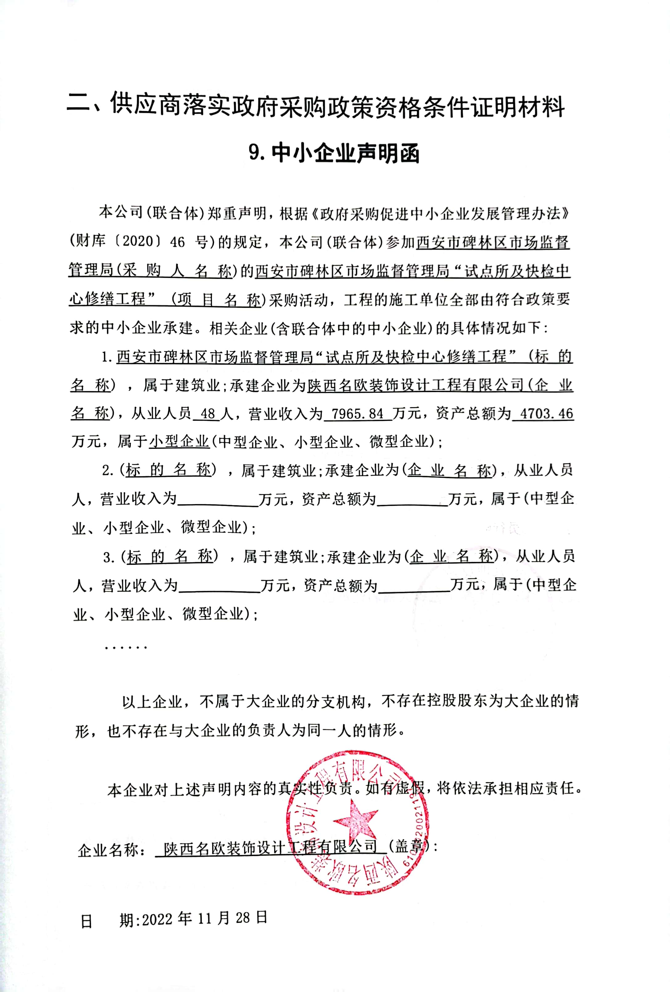 西安市碑林区市场监督管理局“试点所及快检中心修缮工程”中标(成交)结果公告